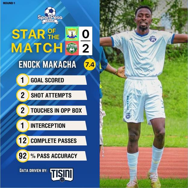 Nairobi United's two goals came from the right-hand side of the pitch, with Ovella Ochieng playing a crucial role in both goals.