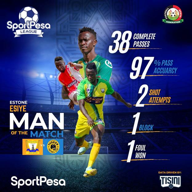 However, Tusker found success when they transitioned to ground play. Fabian Adikinyi and Dennis Iguma were key to this shift, dropping into the backline to provide passing options for the fullbacks and centre-backs.